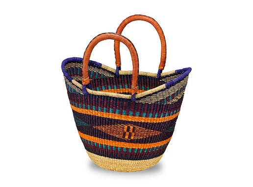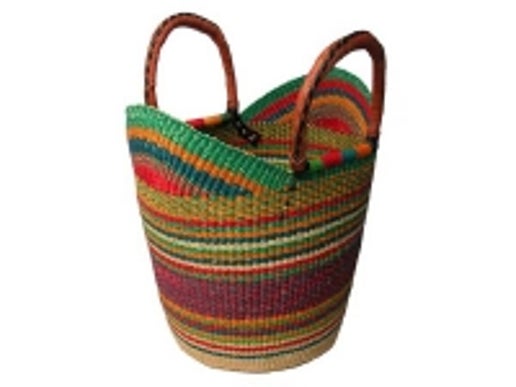 This tote has leather handles and extended sides which are perfect for shopping. Each basket has unique colors and patterns. Please indicate at checkout if you have color preferences!