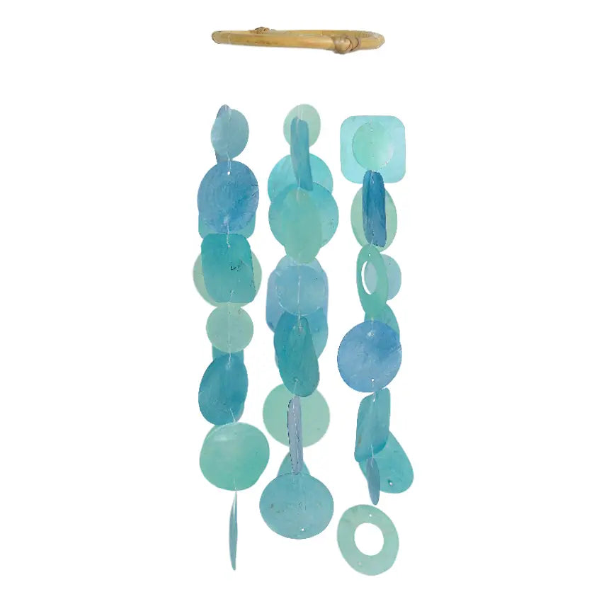 Our capiz chimes are made up of a stunning array of shapes and colors. They sparkle in the light, and when placed outside, create a gentle tinkling of the shells. Our capiz supply comes from a fishing village in Java, where our shell artisans sustainably harvest the shells and shape them.