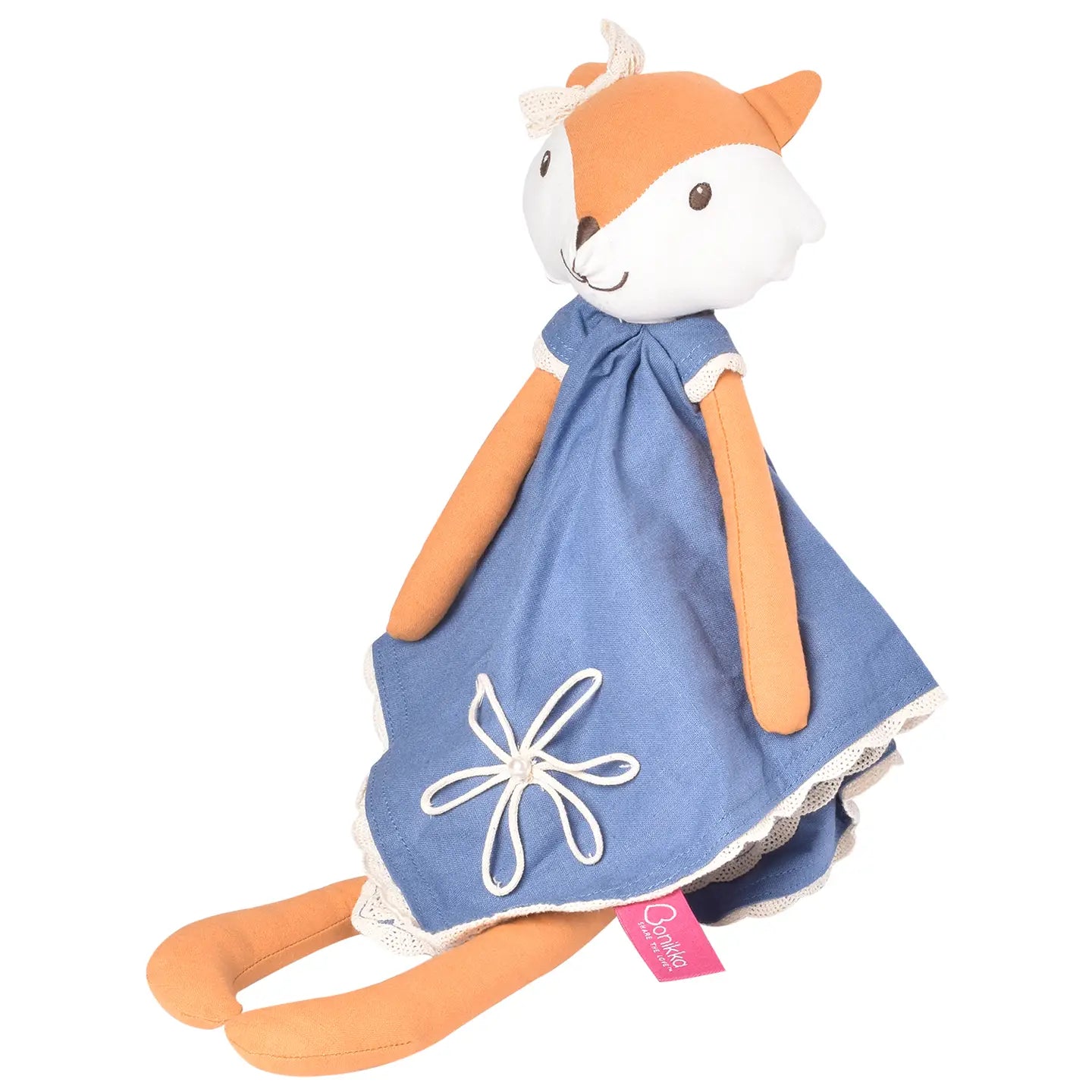 Luca is a very beautiful fox indeed. She is not a country fox but instead lives in the city where she spends her time dressing in pretty dresses and going out for lunch with her friends. Wonderful embroidered features and a delicate bow make her a very pretty fox. Gorgeous soft blue dress with white trim and embroidered flower.