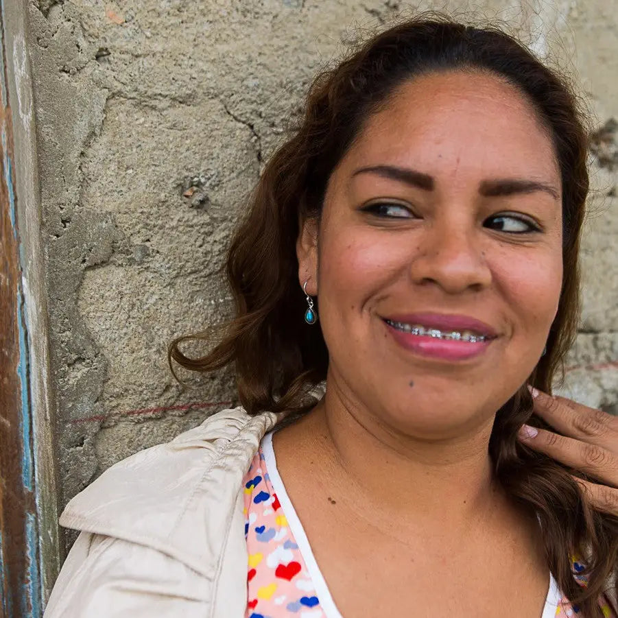 - Made fair trade by women in India from silver-plated recycled metals and semi-precious labradorite stone.