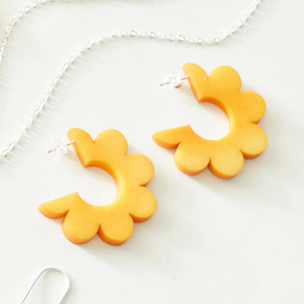 Each component in this collection is made from a slice of tagua seed. The silhouettes are cut out and then colored using textile dyes by sisters Olga and Elisa of the Yurac Muyo Project in Ecuador. The final components are passed on and assembled by Vilma and her team in Quito.
