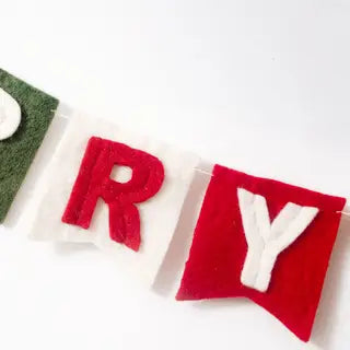 Share the holiday cheer with our banner-style Merry Christmas Garland in festive red, green and white. With poinsettia flowers and loops on either end, this special piece of holiday decor can be hung on your mantel, staircase or entryway. Handmade with felted wool by artisan women in Nepal, this classic Christmas garland can be used year after year to bring in the festive cheer.