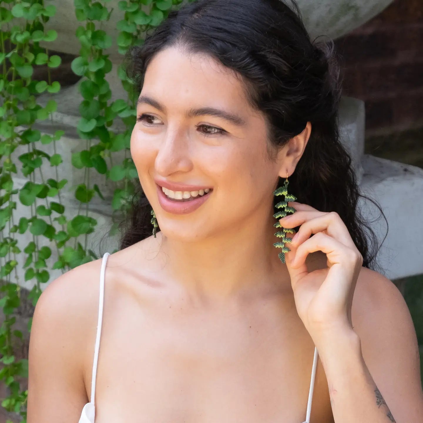 Handmade in Colombia by indigenous Wounaan artisans. Experience the beauty and craftsmanship of Colombian indigenous culture with these Glass Bead Earrings. Each pair is handmade using Miyuki beads and gold plated surgical steel ear-wires, giving them a stained glass window effect. These earrings are a stylish and elegant accessory that will add a touch of cultural sophistication to any outfit.