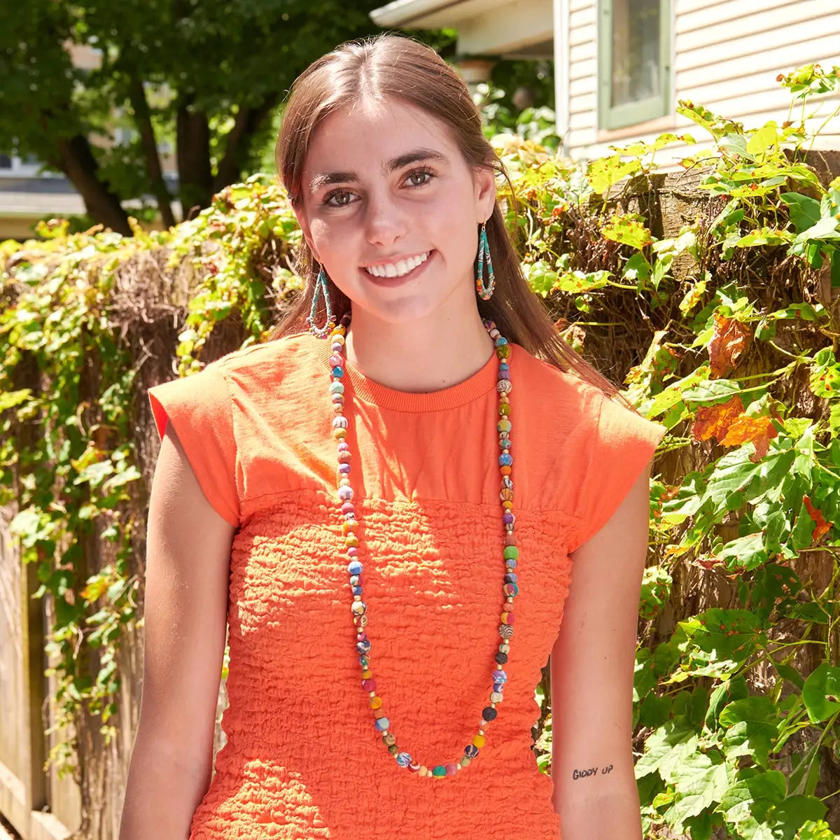 Tiny metallic glimmer beads punctuate groupings of colorful Kantha beads for the perfect amount of texture and sparkle. Wear it long or doubled for lots of style versatility. Matches nicely with our best-selling Kantha Sonnet Bracelet.
