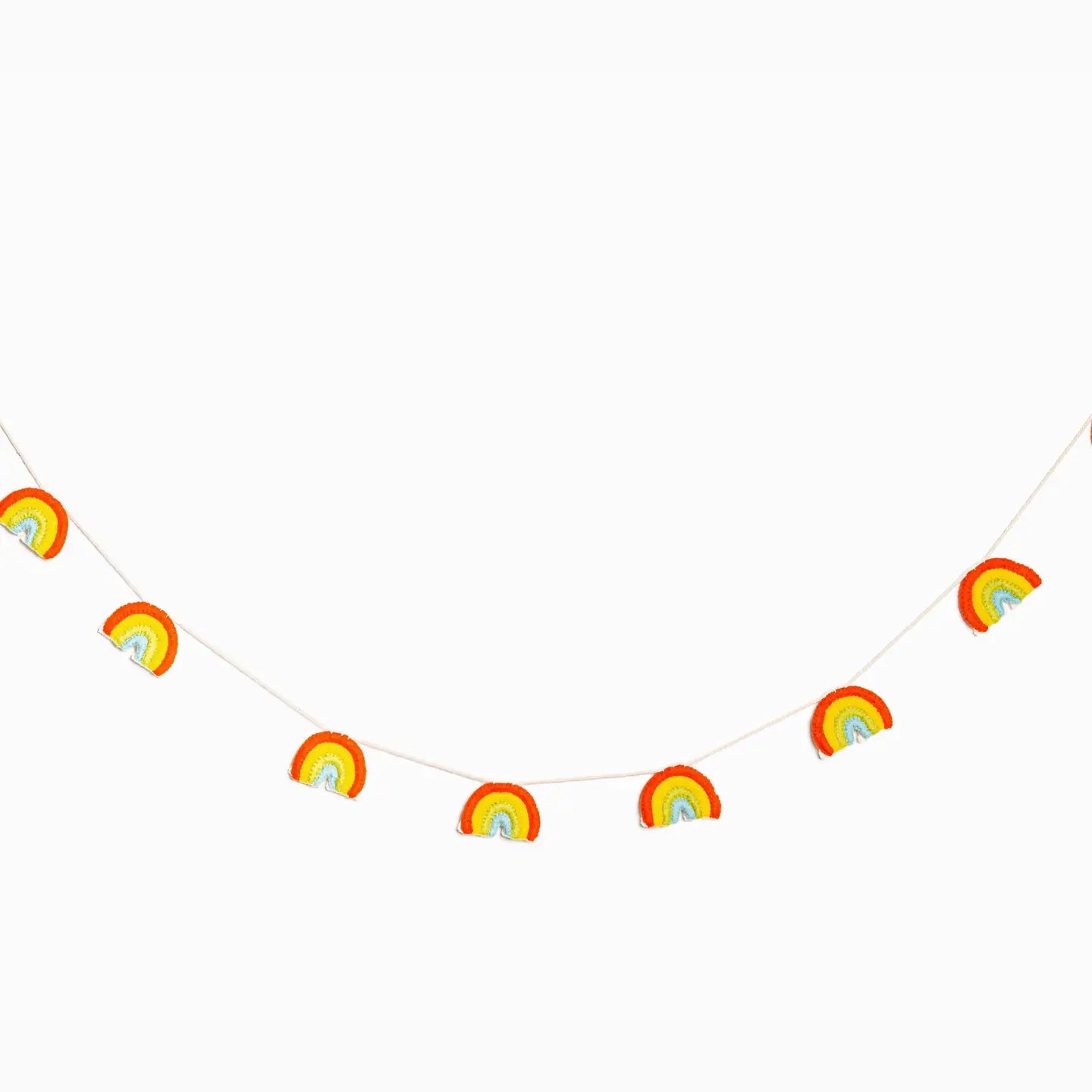 Bring a burst of cheer to any space with our adorable Felt Rainbow Garland! Featuring a string of mini rainbows, complete with fluffy clouds at the base, this garland is pure delight. Perfect for brightening up kids' rooms, nurseries, or party décor, it adds a whimsical, uplifting vibe wherever it’s displayed. Handcrafted with love by fair trade artisans, this garland combines sustainable materials with charming design. Whether you're celebrating a special occasion or simply adding a pop of color to your day, this felt garland is sure to bring smiles all around!