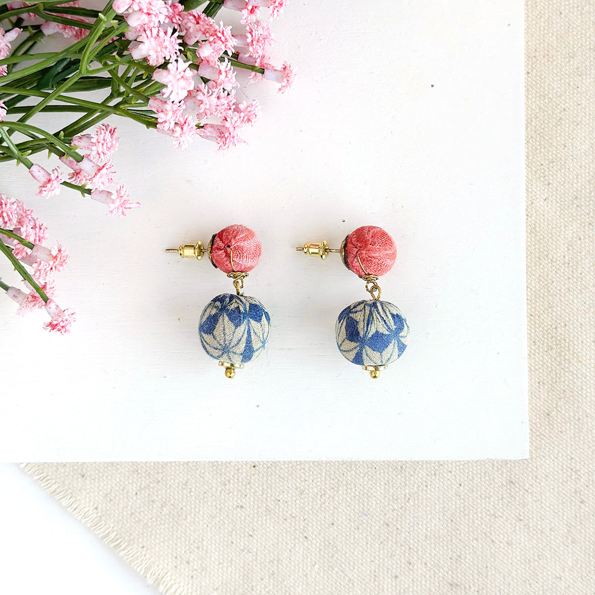 A medium-sized Kantha bead dangles from a post-backed Kantha bead in this fun (and a bit proper) vintage-inspired style. Crafted from repurposed Sari and Kantha fabric, each is one-of-a-kind and colors and patterns will vary.