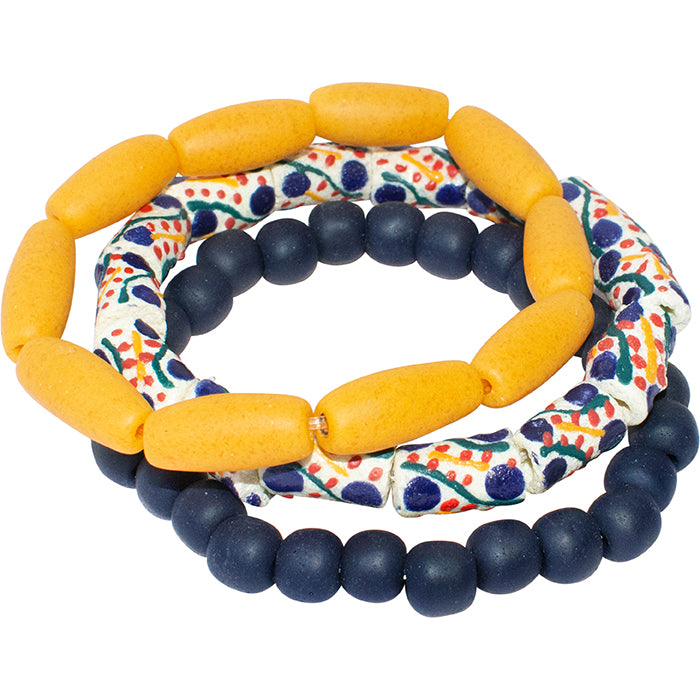 Manye means Queen Mother in the Krobo dialect. Our Manye Stacking bracelets come in a color coordinated set of three.
