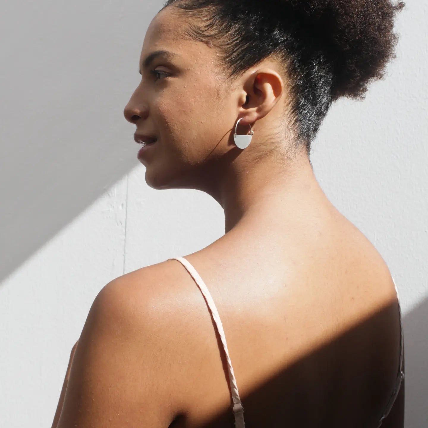 Meet the new and improved version of our all-time bestseller Half Moon Earrings! Now in a matte silver finish! These classic earrings are lightweight and chic and can be dressed up or down. Available in 2 sizes.