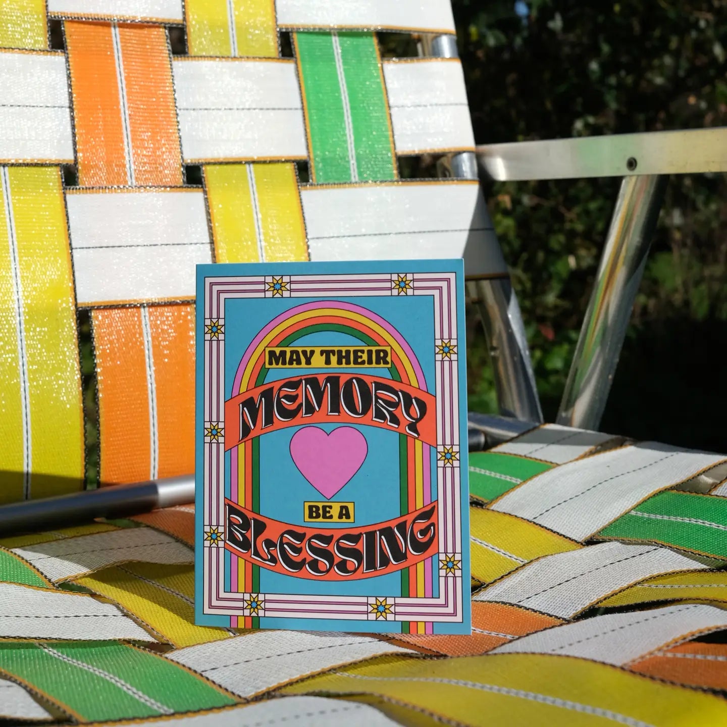 "May their memory be a blessing" is a Jewish saying we use for the bereaved. While loss is hard, someone is never lost forever if they live in your memory. A2 card, 110 lb paper, blank inside.
