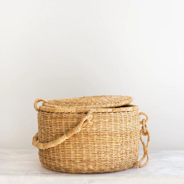 Carry your picnic, store your handicraft material, keep take-along toys in it, the possibilities are endless! These delicately textured and handcrafted woven baskets were made by groups of women in intimate communities in the Bolgatanga region of Ghana in an ethical, fair trade environment.