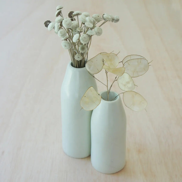 - The small vase stands 5 inches tall.