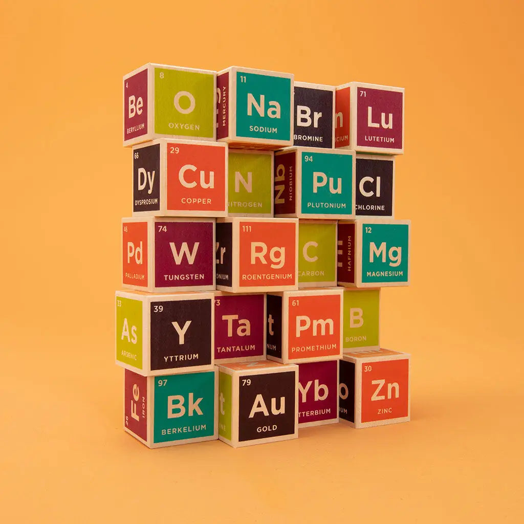 Probably the only time you should let a child play with Plutonium and Arsenic. Each colorful block features six element images accompanied by their atomic number, symbol, and name. Mad scientists of all ages love these blocks. The vibrant and vivid colors capture the eye and excite imaginations. Adults claim to get these blocks for children...but often get sets for themselves, as well. Who can blame them? Periodic Table Blocks make for a colorful display, but are also fun for playing, learning, and advancing scientific discussions.